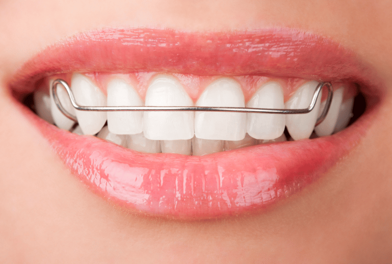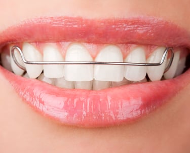 Dispositivo utilizado após o tratamento ortodôntico para manter os dentes na posição correta e evitar que se movimentem novamente.